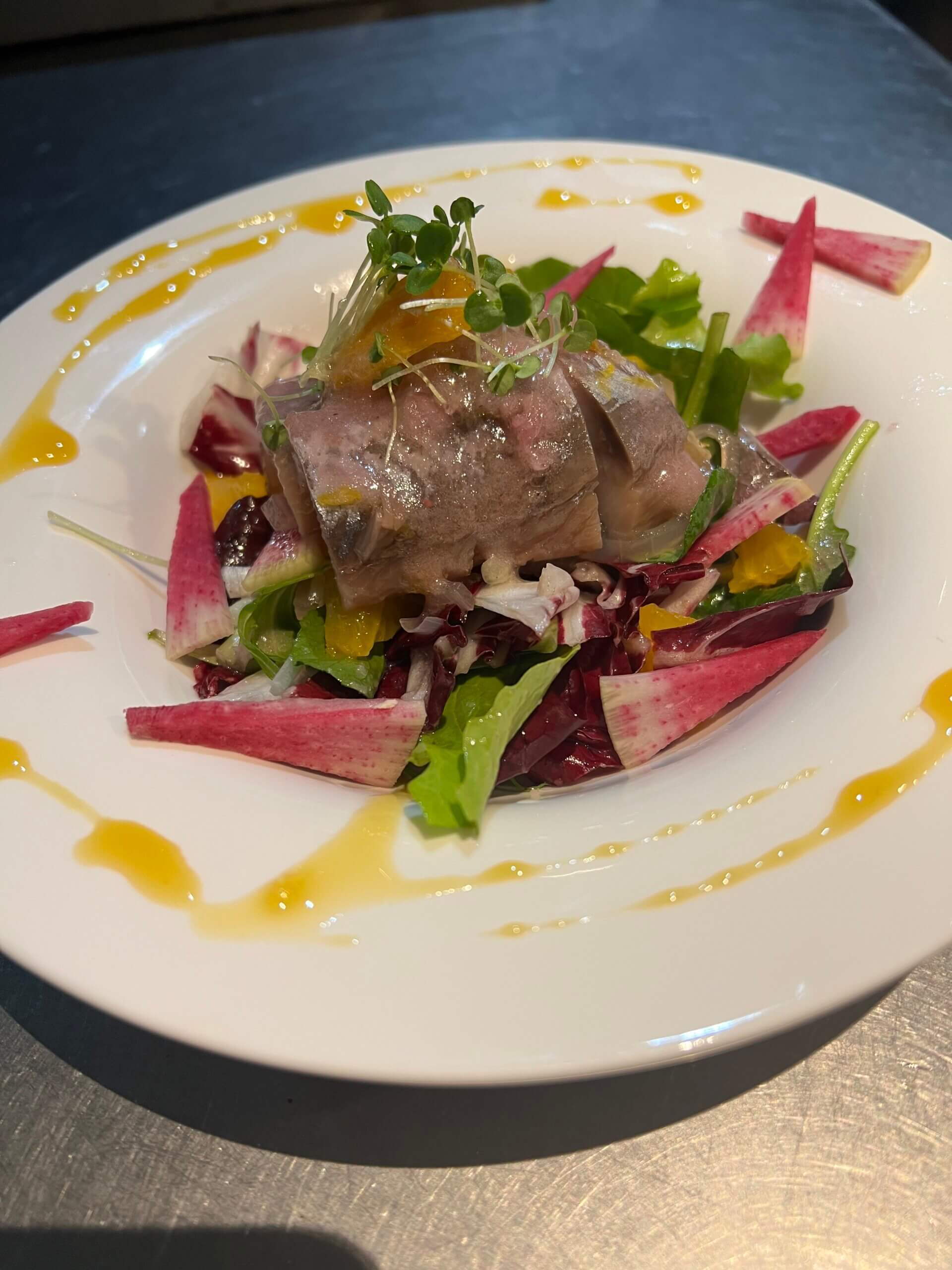 道産ニシンと道産紫玉ねぎ、オレンジのマリネ サラダ仕立て