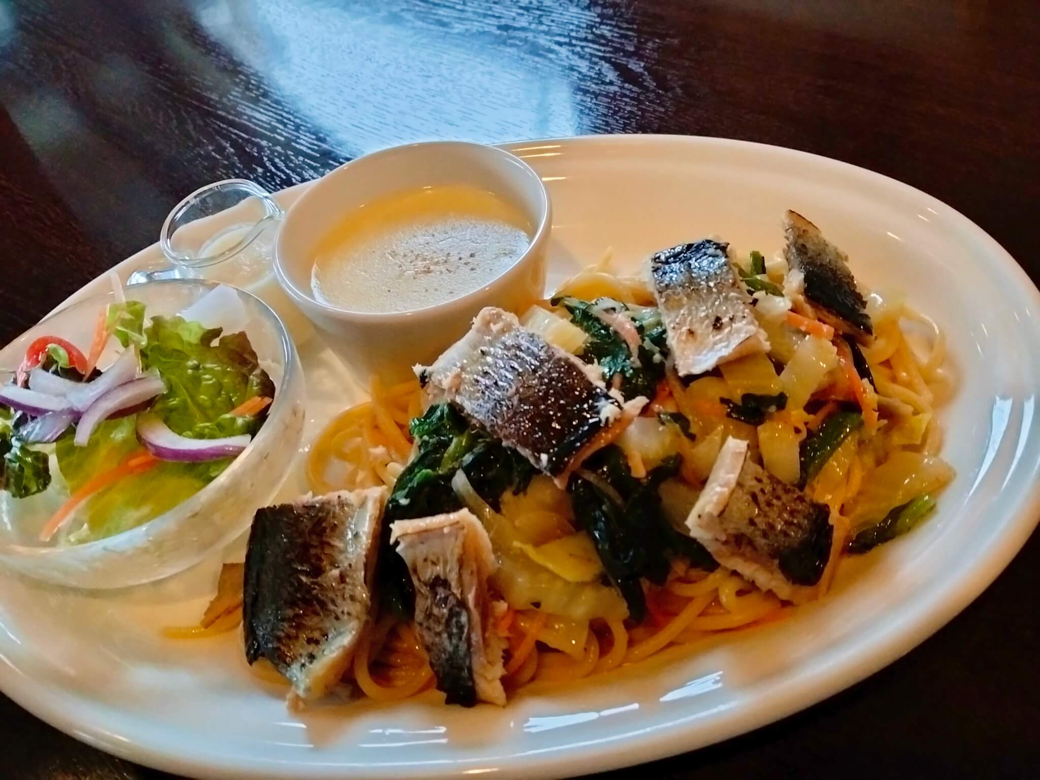 ニシンと春菊のパスタ オリーブオイル