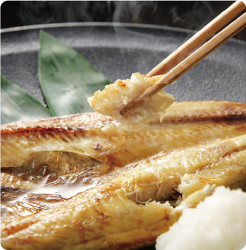 脂が乗り、身がほくほくしたほっけの開きは、ご家庭でも、居酒屋でも定番のおさかなメニューの一つ。“北海道のさかな”として観光客にも人気です。一時は不漁が続きましたが、近年漁獲量が回復しています。北海道のほぼ全域に生息し、産卵は9月中旬~12月中旬。成長によって呼び名が変わり、稚魚期から着底までの回遊期はコバルト色の体色から「アオボッケ」、着底してから1歳までの未成魚は「ロウソクボッケ」、1歳半の春に餌を求めて沿岸に接岸するものは「ハルボッケ」、岩礁周辺に定着するようになると「ネボッケ」と呼ばれます。