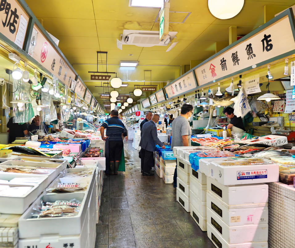駅前にある函館朝市も、もちろんお勧めなのですが、住宅街にある“はこだて自由市場”は、市民に寄り添う市場という位置付けで、鮮魚をはじめ、干物や青果などがところ狭しと並んでおり、場内を歩くだけでもワクワクしますよ!営業は7:00からですが、9:00を過ぎたあたりから、先ほど卸売市場で仕入れたと思われる鮮魚が次々と運ばれてきて、ますますにぎやかに!市民はもとより料理人も仕入れに来ているそうで、オサナイが取材していた時も、それらしき方を見かけました。購入した魚はその場でさばいてくれるので、プロの包丁さばきも堪能することができます。また、フードコートや食堂なども数軒あり、購入したものをその場で味わうことができるのも魅力です。